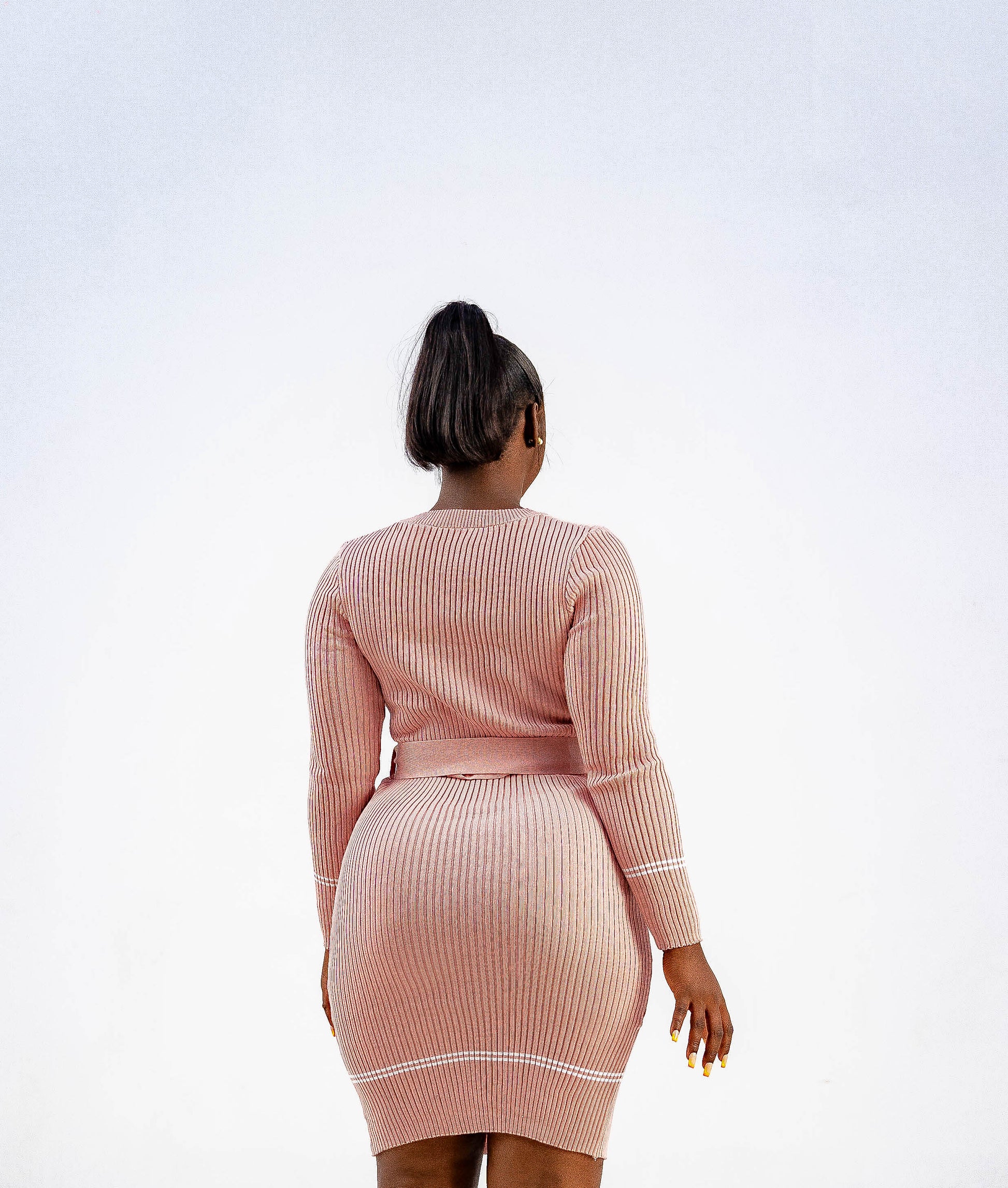 WOVEN HIP-WRAPPED BOTTON DRESS